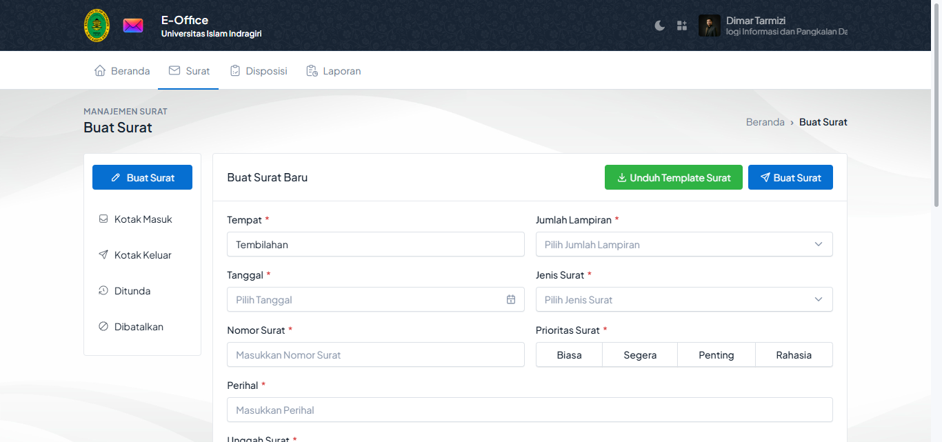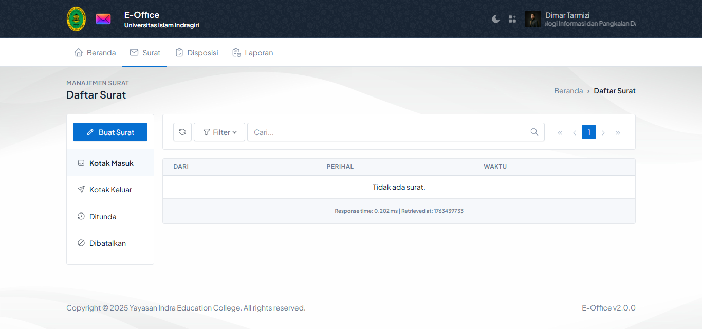 Aplikasi untuk mengelola surat masuk/keluar, disposisi, dan pengarsipan surat digital di lingkungan Universitas Islam Indragiri.